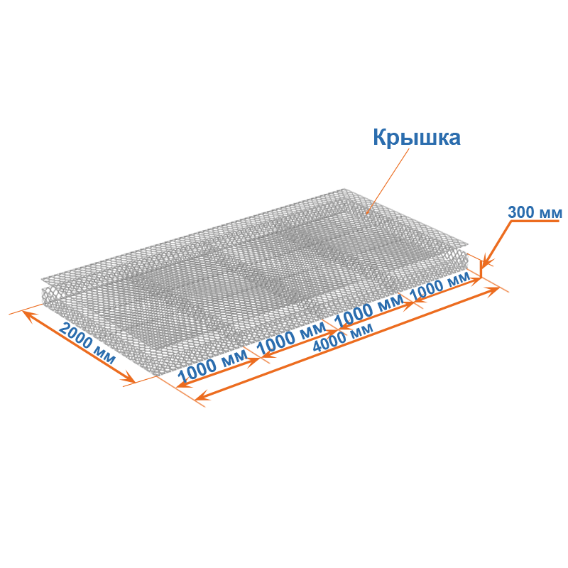 № | Длина, Ширина, Высота, м | Размер ячейки, мм | Диаметр проволоки, мм | Тип покрытия |